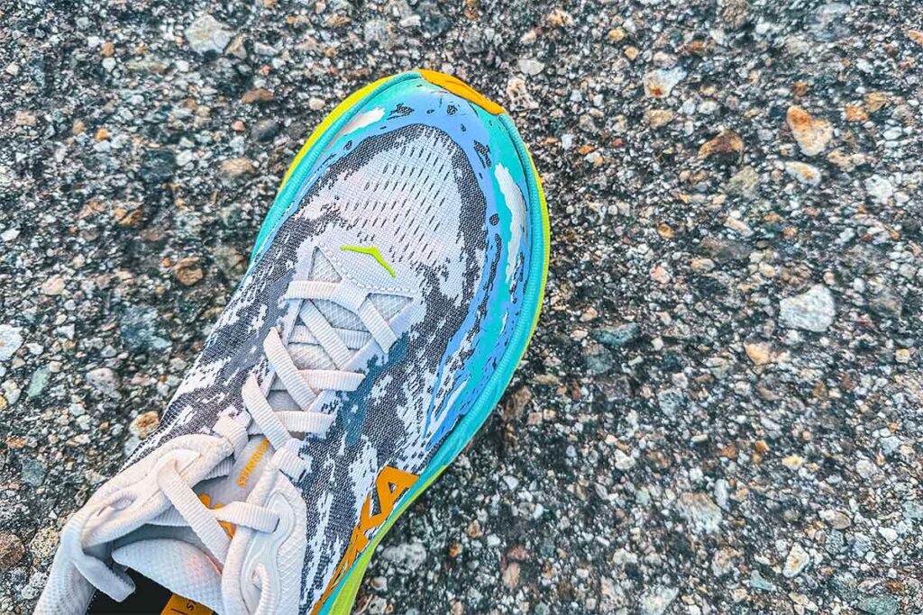 Detto questo avendola provata anche su terreni dell’arco alpino e tecnici, ha comunque un buon grip e non ha dato alcun problema su rocce anche bagnate e radici ma per terreni così tecnici consiglio di affidarsi ad altri modelli della linea Hoka come le Speedgoat 5 o le Mafate 4 che sicuramente danno maggiore grip e sicurezza e sono più performanti su quel tipo di terreni.